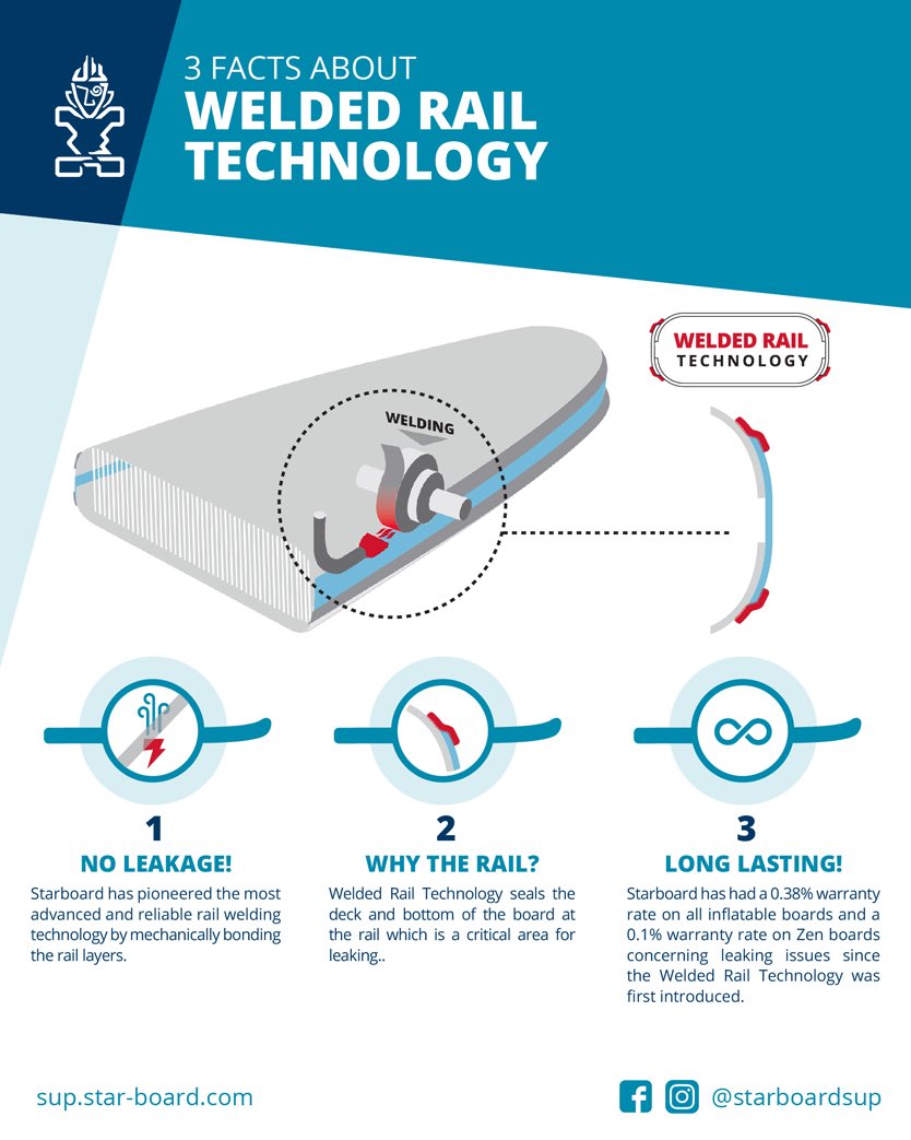 • Welded Rail Technology - mechanically bonded seams create a stronger, longer-lasting, and completely airtight board.