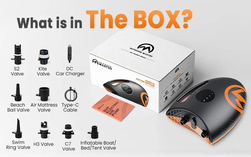 With 8 interchangeable nozzles, the Outdoor Master Shark 2S adapts to all your gear - from inflatable paddle boards and kayaks to air mattresses, pool floats, and tents. Whether you’re prepping for race day, setting up a floating platform, or inflating a festival campsite, this pump is ready.